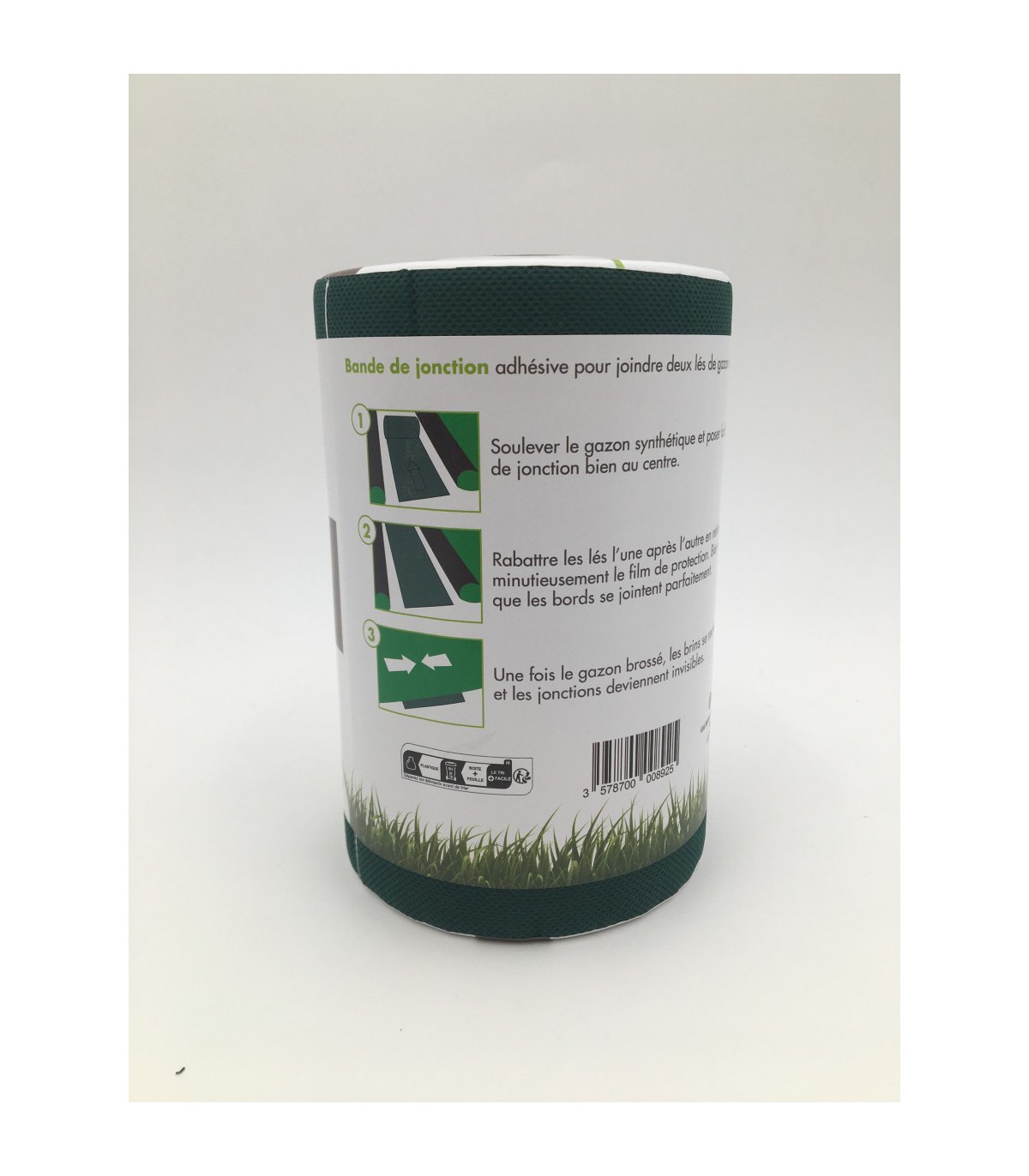 Une bande de jonction spéciale pour gazon synthétique est un accessoire indispensable pour assembler les différents rouleaux de gazon synthétique. Elle permet de créer des transitions propres et solides entre les différentes sections de gazon, tout en assurant une finition soignée et durable. Conçue pour être utilisée en intérieur et en extérieur, cette bande est fabriquée à partir de matériaux résistants et est recouverte d'un adhésif puissant qui facilite la pose sans besoin de colle supplémentaire.