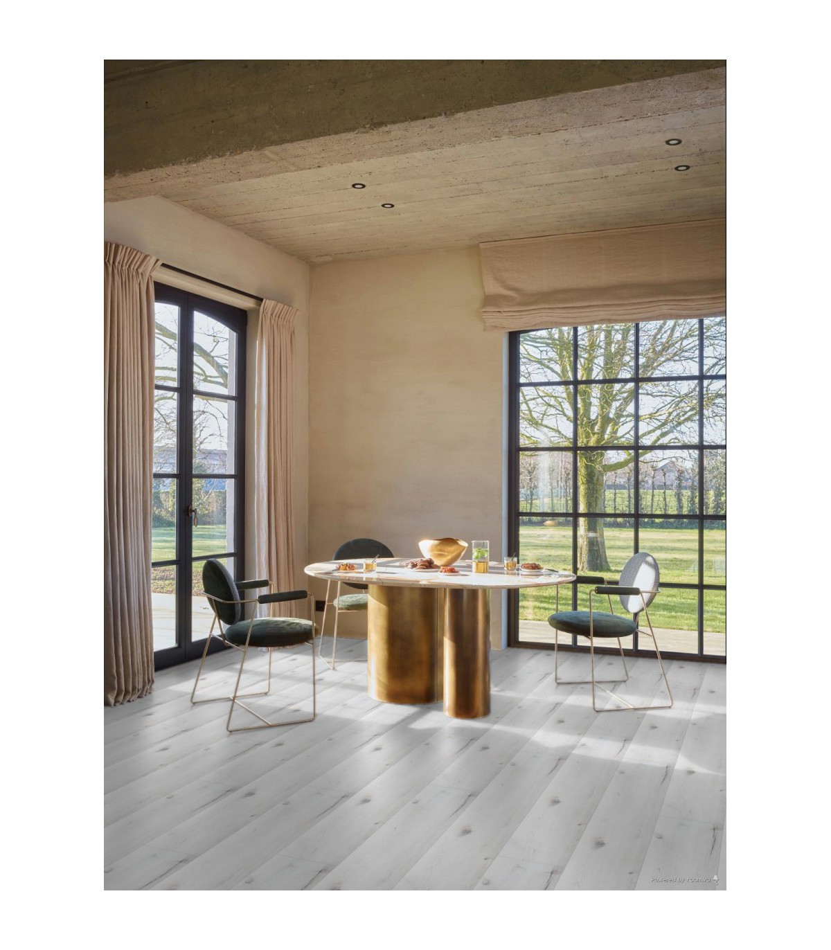Caractéristiques techniquesSystème de pose : 5G Classe d’usage : 23 (domestique élevé) / 33 (commercial élevé) Garantie résidentielle : 25 ans Chauffage par le sol : compatible – chauffage eau chaude basse température max. 27°C (80°F) / chauffage par le sol électrique: max 60 W/m² Chaise à roulettes : réussi Indice de résistance au feu : Bfl-s1 Résistance à la lumière : > 7 Résistance thermique : 0,033 m2 K/W Résistance aux produits chimiques : OK Poinçonnement rémanent : <0,1mm Glissance : R10 classe DS Réduction des bruits (bruit d’impact) : 20 dB Bruit réfléchi à la marche : 52% réduction des bruits Stabilité dimensionnelle : < 0,15 % Garantie usage résidentiel : 25 ans Garantie usage commercial : 10 ans |