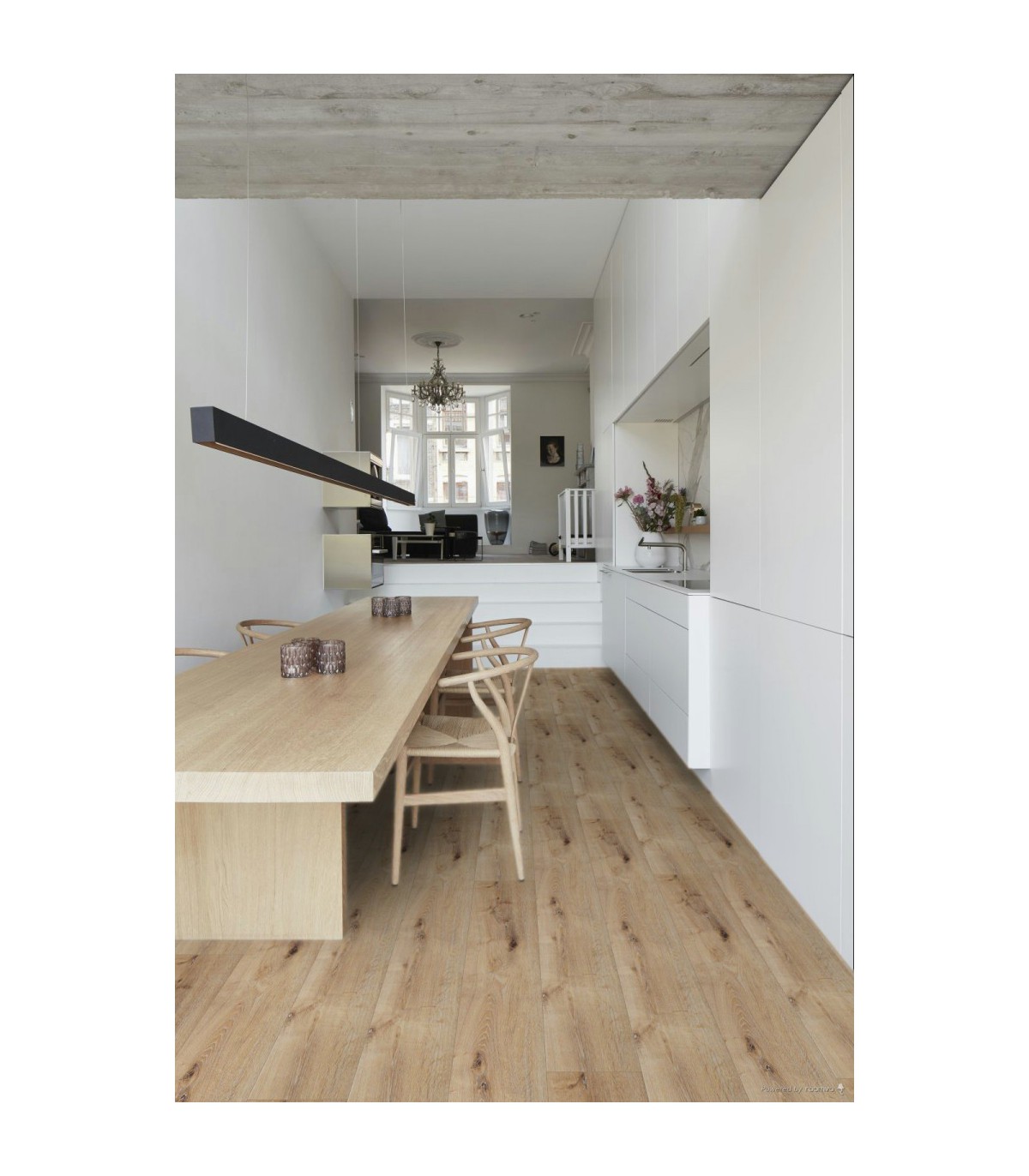 Caractéristiques techniques :Système de pose : 5G Classe d’usage : 23 (domestique élevé) / 33 (commercial élevé) Garantie résidentielle : 25 ans Chauffage par le sol : compatible – chauffage eau chaude basse température max. 27°C (80°F) / chauffage par le sol électrique: max 60 W/m² Chaise à roulettes : réussi Indice de résistance au feu : Bfl-s1 Résistance à la lumière : > 7 Résistance thermique : 0,033 m2 K/W Résistance aux produits chimiques : OK Poinçonnement rémanent : <0,1mm Glissance : R10 classe DS |