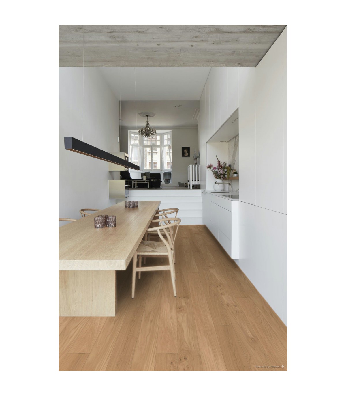 Ce parquet bois met en valeur un chêne naturel aux nuances douces et chaleureuses. Il s’intègre facilement dans les intérieurs contemporains, scandinaves ou plus classiques, tout en conservant une authenticité remarquable.