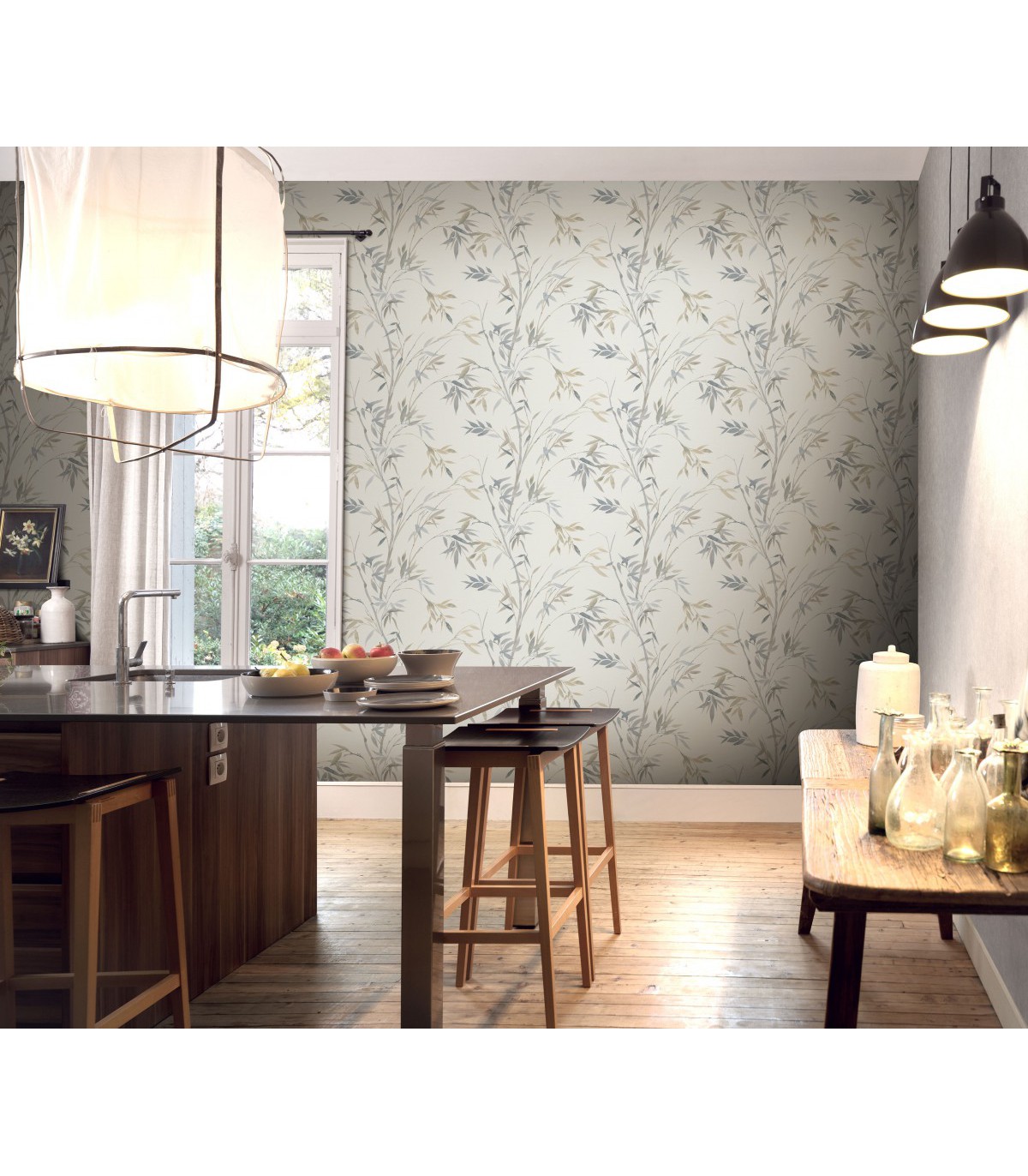 Papier peint Erismann, Collection Martinique - Intissé grainé, Décor : BAMBOU BEIGE GRIS