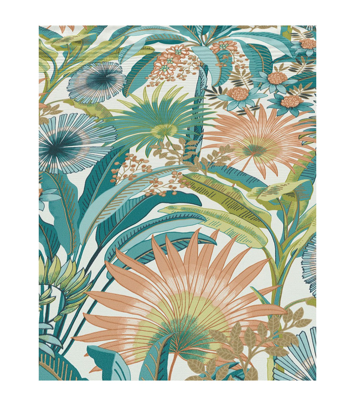 Sa palette de couleur chromatique est directement inspirée de la nature exotique des Caraïbes et de ses paysages. La terre, le ciel et les végétaux sont les principales textures mis en avant dans la collection, elles contribueront à créer une oasis tropicale qui se distinguera des autre styles de décoration en vogue. La collection se décline en de nombreux motifs végétaux et en couleurs unies aux tons pastel et légèrement délavés. Ce choix de couleurs chaleureuses mais douces permettent de rajouter un élément visuel fort dans votre décoration intérieure sans subir l’effet omniprésent d’une couleur trop vive.