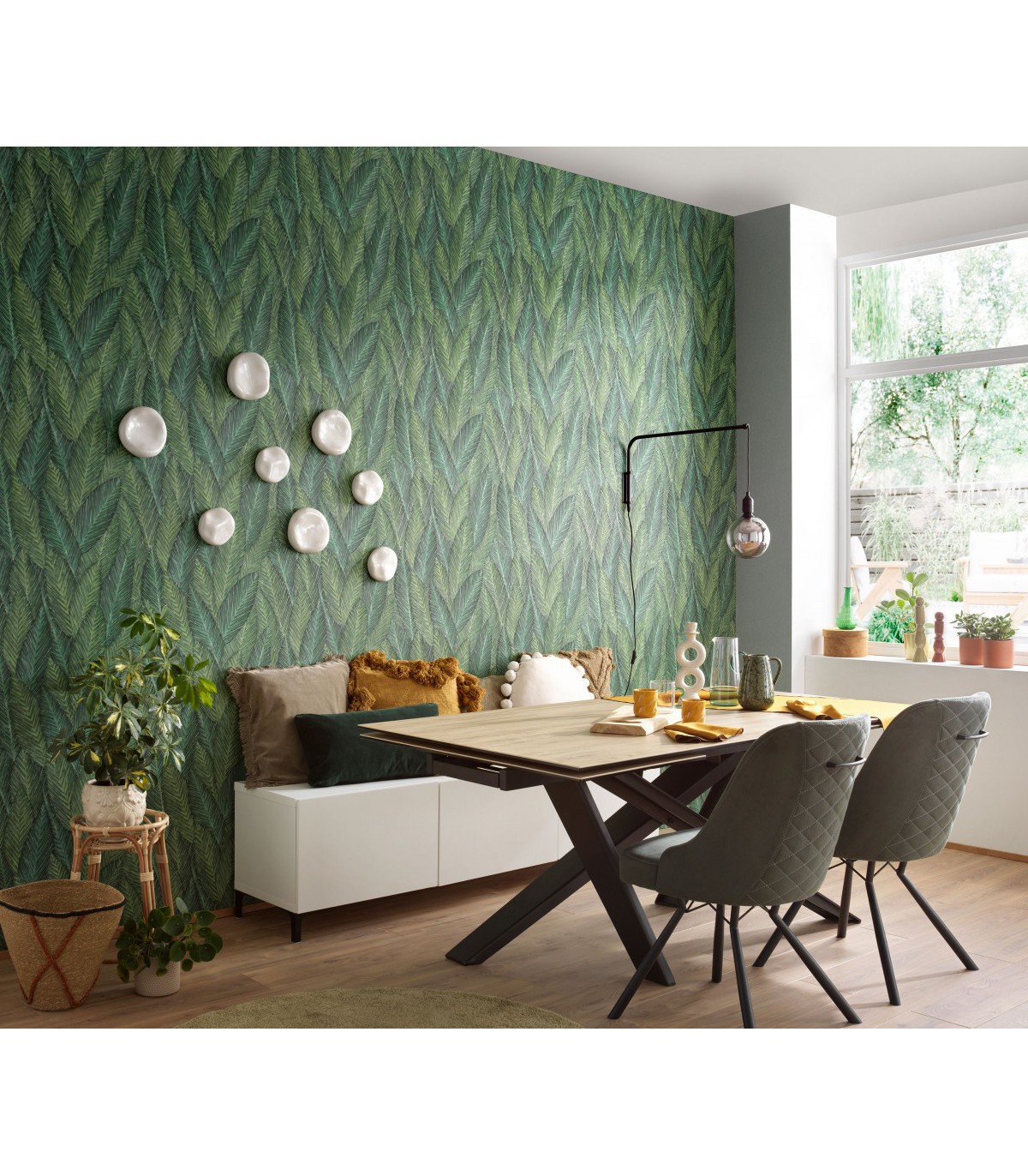 Papier peint Erismann, Collection Martinique - Intissé grainé, Décor : RETREAT VERT