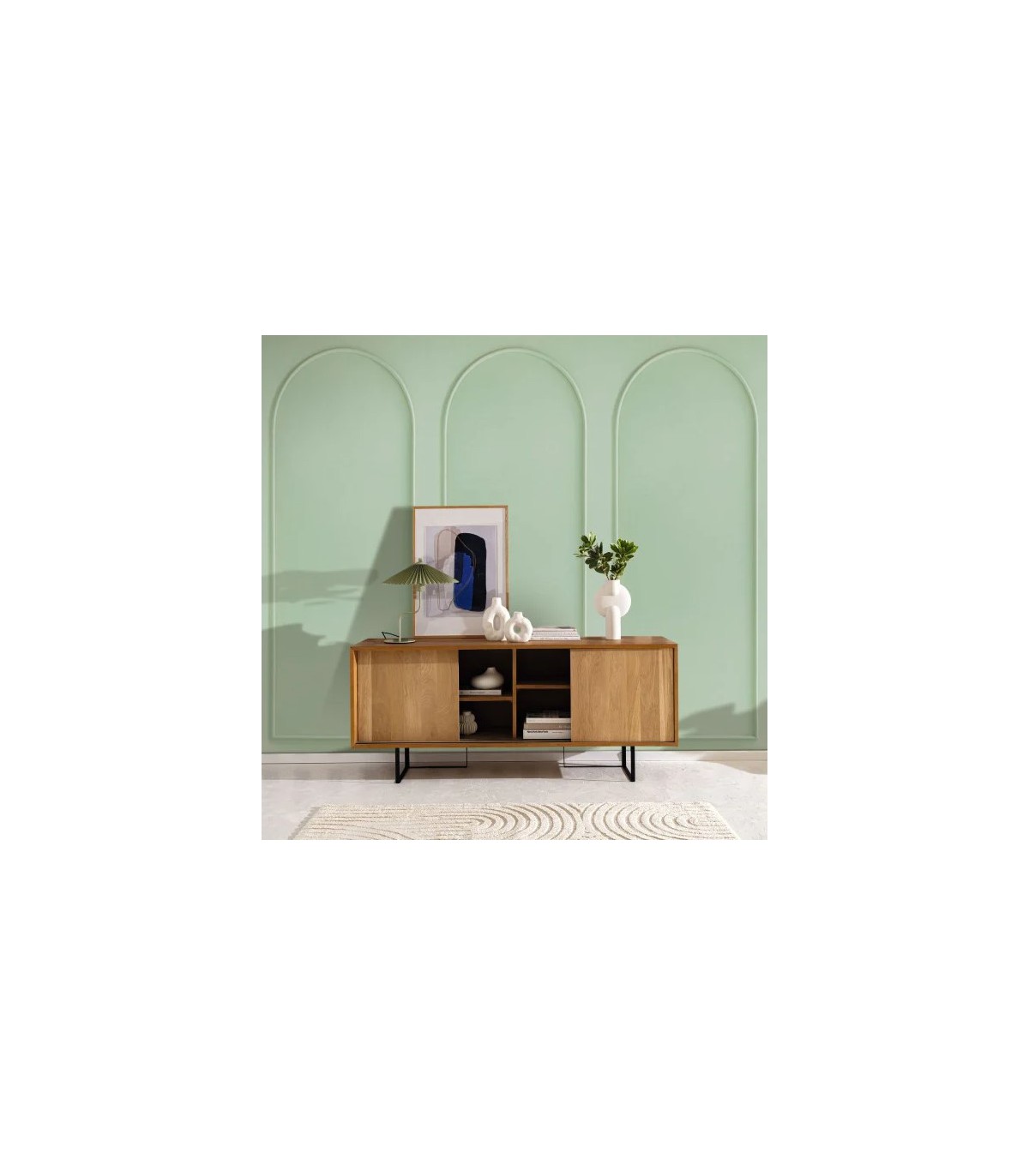 Le panoramique Moulding Arch Vert introduit une présence subtile de couleur tout en conservant l’élégance architecturale du motif. Ce vert doux, plutôt discret, confère une atmosphère apaisante et contemporaine, tout en restant suffisamment neutre pour s’associer à des tons bois, crème ou métalliques.