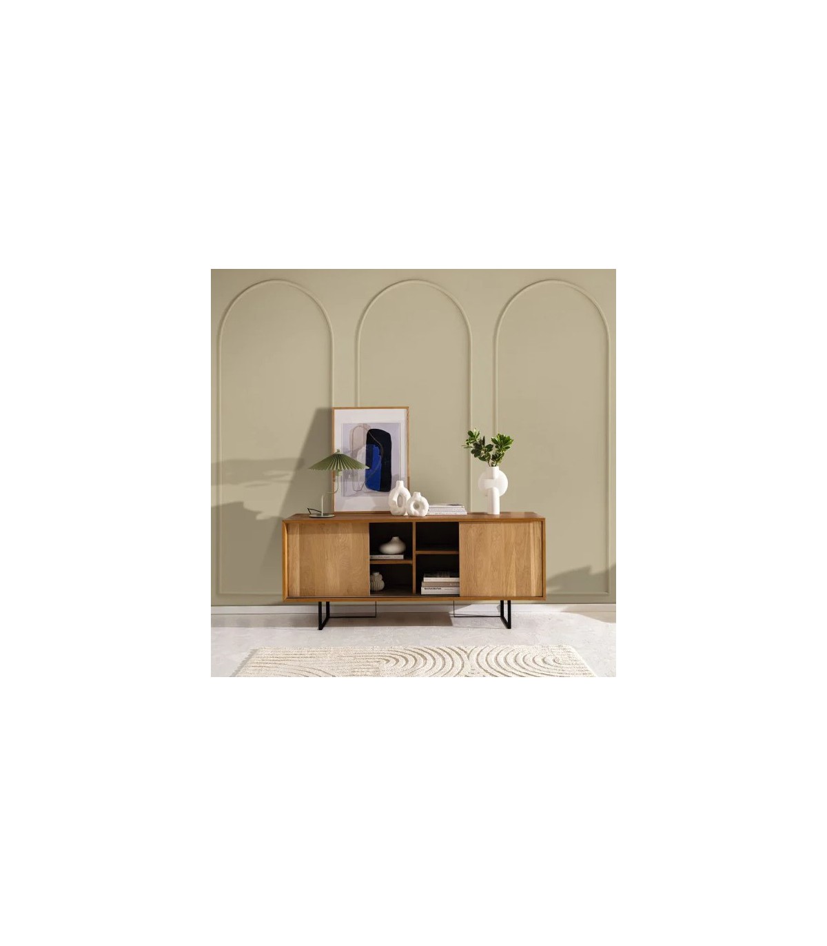 Le panoramique Moulding Arch Beige apporte une luminosité maximale. Sa teinte claire équilibre l’ombre des reliefs sculptés, mettant en avant les volumes et les lignes du décor. Idéal pour les pièces peu exposées à la lumière, le coloris de ce papier peint agrandit visuellement l’espace et permet une décoration contrastée facile à composer.