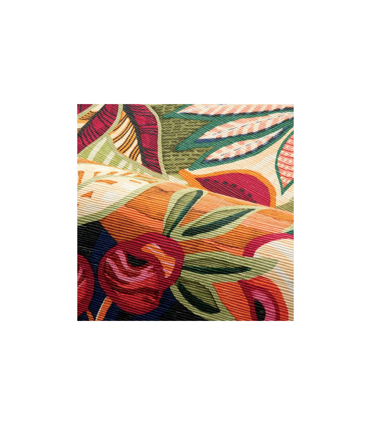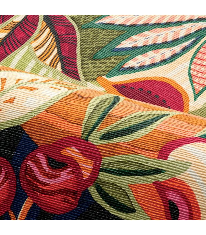 Les Mexicains ont pour coutume d’orner de motifs floraux la tehuana, une tenue traditionnelle portée pour les célébrations. Richement brodée, c’est une véritable œuvre d’art en vertu de ses couleurs éclatantes et ses motifs détaillés. Ce grand dessin all over traduit la richesse de la faune et de la flore mexicaine. De la profusion de couleurs et d’une imbrication de feuilles, de fleurs et d’oiseaux jaillit un sentiment d’allégresse. Il s’exprime dans un aspect naturel et une belle matité, obtenus par la texture paille du papier. Pour sa réalisation, six cylindres sont nécessaires. TEHUANA se décline en quatre coloris actuels et un neutre. TEHUANA 7630 0406 est coordonné au textile PICO BONITO 4509 0324