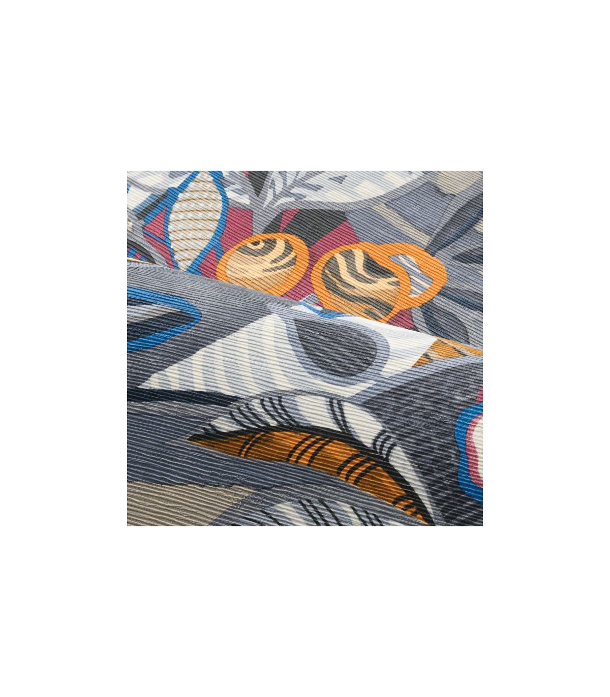 Les Mexicains ont pour coutume d’orner de motifs floraux la tehuana, une tenue traditionnelle portée pour les célébrations. Richement brodée, c’est une véritable œuvre d’art en vertu de ses couleurs éclatantes et ses motifs détaillés. Ce grand dessin all over traduit la richesse de la faune et de la flore mexicaine. De la profusion de couleurs et d’une imbrication de feuilles, de fleurs et d’oiseaux jaillit un sentiment d’allégresse. Il s’exprime dans un aspect naturel et une belle matité, obtenus par la texture paille du papier. Pour sa réalisation, six cylindres sont nécessaires. TEHUANA se décline en quatre coloris actuels et un neutre. TEHUANA 7630 0406 est coordonné au textile PICO BONITO 4509 0324