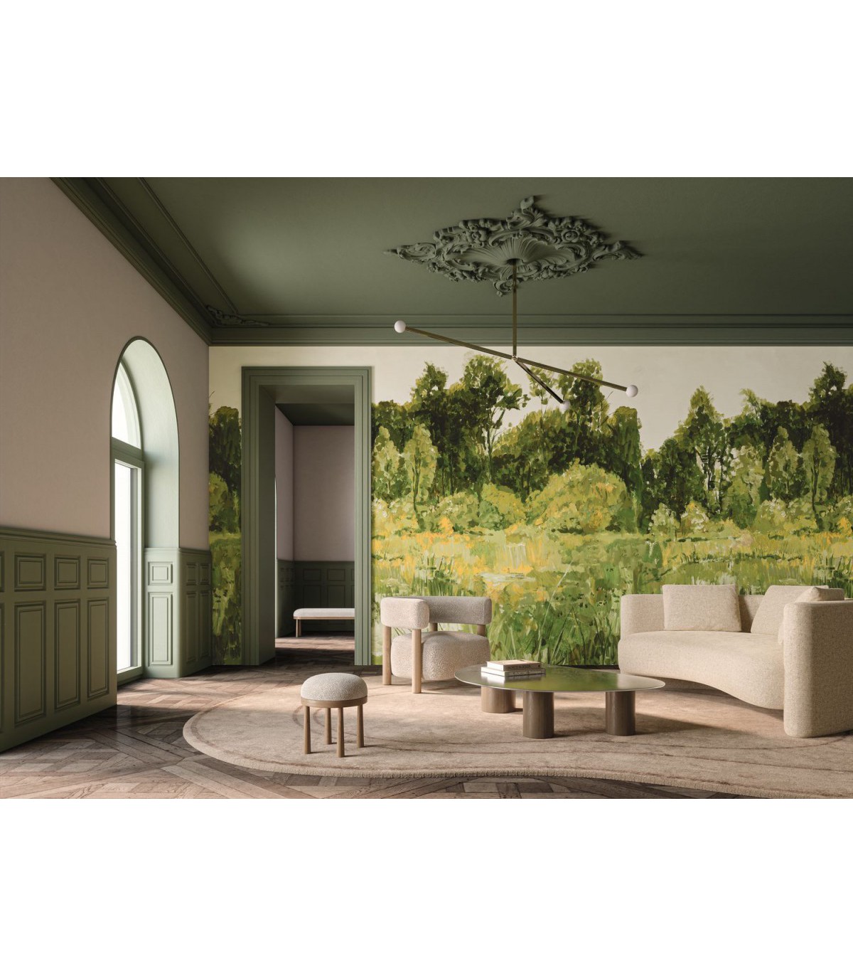 C’est une étendue d’eau où les colverts trouvent refuge, un miroir dans lequel la nature se reflète, une source d’apaisement pour le promeneur solitaire. Ce panoramique de grande largeur offre l’illusion d’une peinture sur toile et procure un sentiment d’harmonie. Constitué de six lés, il est proposé en deux coloris.