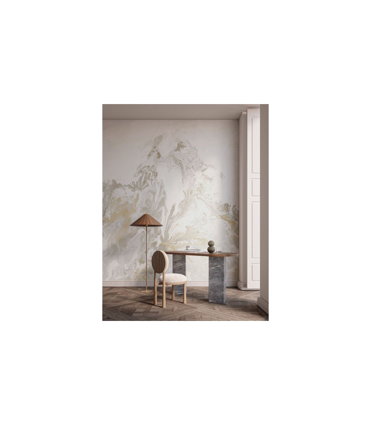 Provenant des carrières de Carrare dans le nord de l’Italie, le marbre de Calacatta est recherché pour ses veines profondes rehaussées d’accents dorés et sa couleur lumineuse. Associé au luxe, destiné aux plus prestigieuses architectures, il inspire Casamance pour ce panoramique. Notre bureau de style a créé un effet de marbrure, empruntant à la pierre sa noblesse naturelle, retraçant les veines ondulantes et les teintes mêlées. Réalisé par impression digitale sur une base métallique, le dessin exprime richesse et élégance, dans un esprit très contemporain.