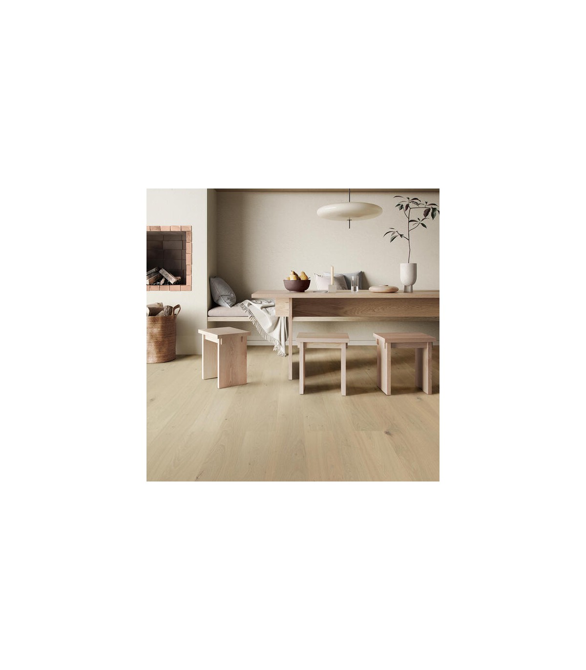 Le parquet contrecollé en chêne naturel clair s’intègre facilement dans tous les styles d’intérieurs : scandinave, contemporain, minimaliste ou classique revisité.