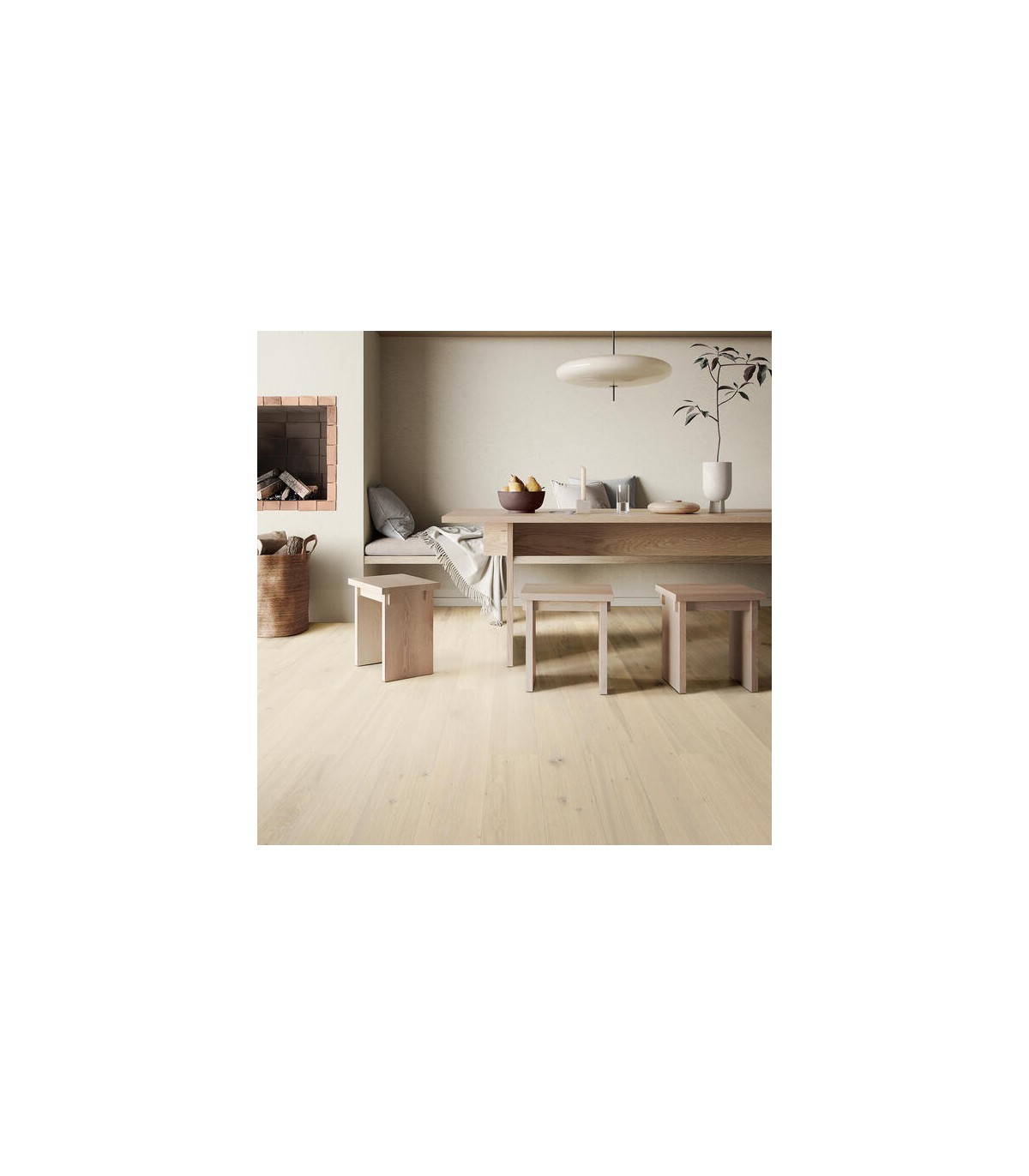 Le bois naturel utilisé en surface conserve toute sa chaleur et son authenticité, tout en bénéficiant d’une conception moderne adaptée aux usages intensifs. Ce parquet est ainsi parfaitement adapté aux zones de vie quotidiennes.