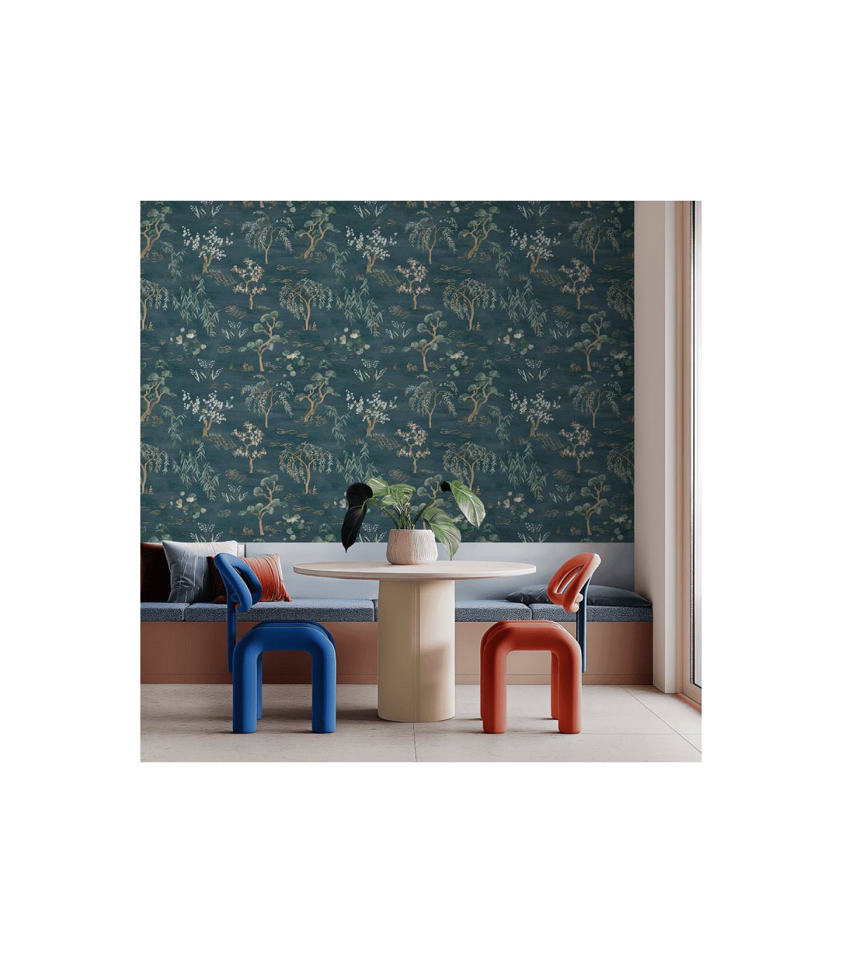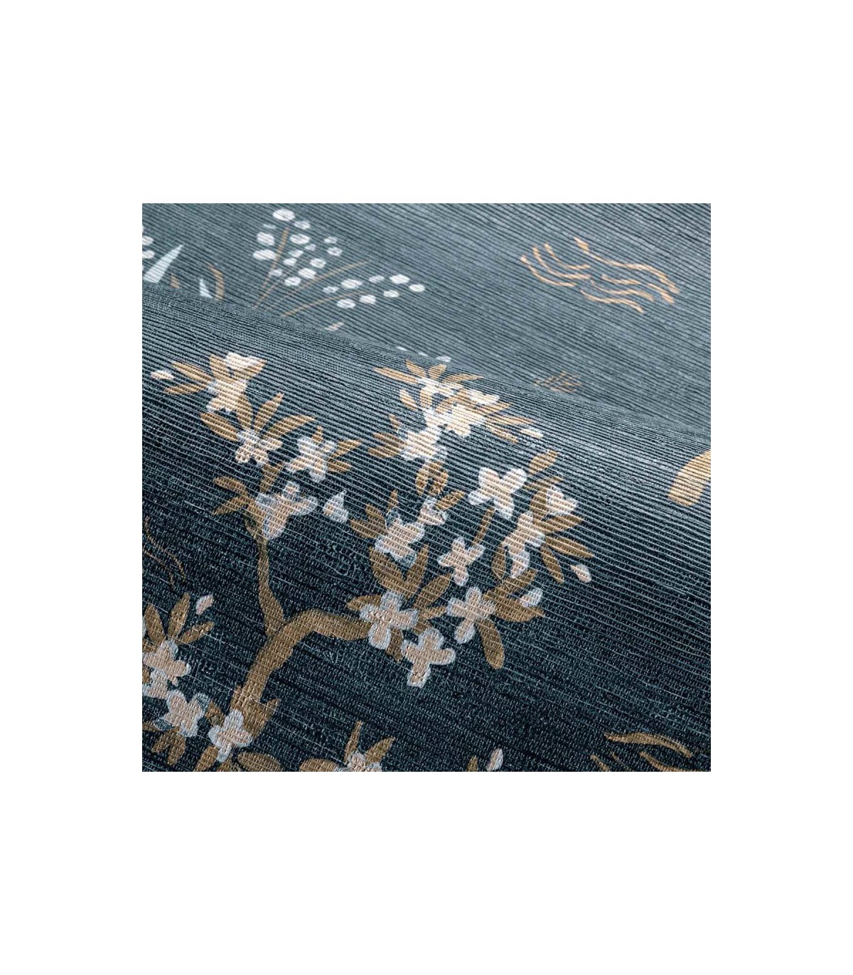 Ame désigne la pluie en japonais et traduit la beauté du monde après l’averse. C’est la pluie qui éveille la terre et donne à la nature toute sa luxuriance. Sur un vinyle de grande largeur à l’aspect précieux de la soie, se dessinent des arbres où des effets d’encre de chine se diffusent sur un fond patiné.