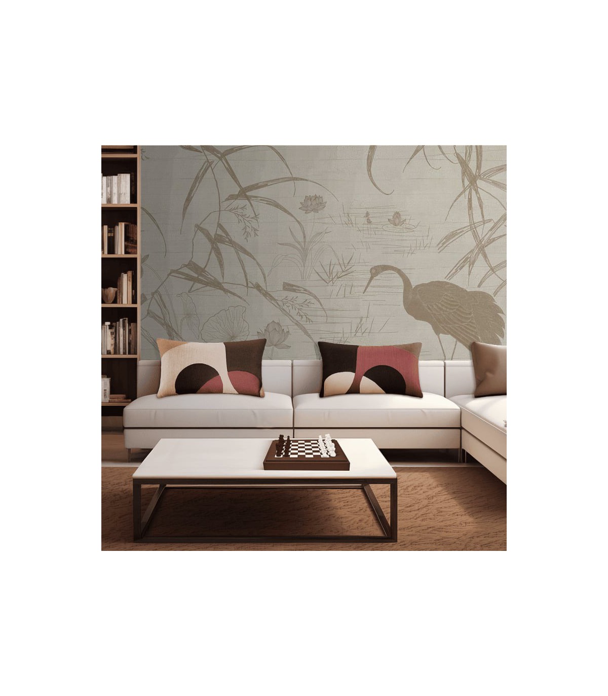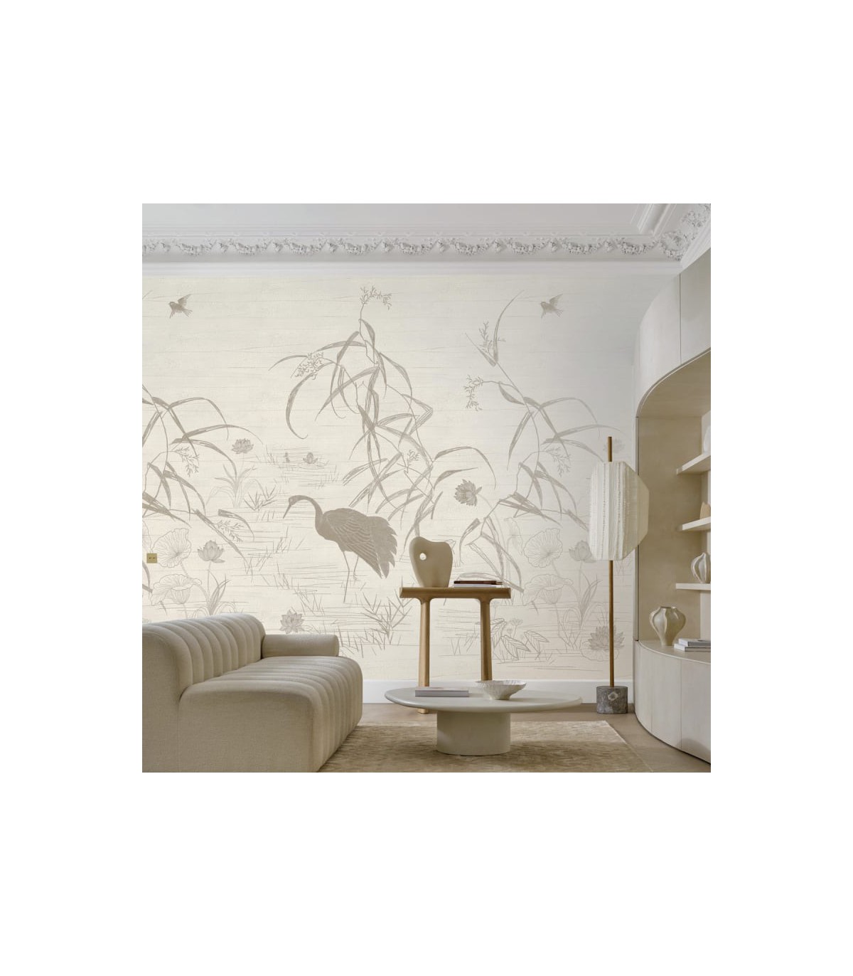 Ce panoramique inspiré d’une maquette d’archive représente un paysage intemporel, brodé d’une soie fine et délicate selon la technique millénaire du nuido. Dessinés par notre studio de création, les détails floraux apportent une touche gracieuse et raffinée. Par le choix du motif, le travail précieux du fil de soie et la sérénité qui émane de la broderie, le nuido a pour vocation de créer l’accord parfait entre l’artiste et la nature. Imprimé sur un vinyle présentant l’aspect irisé de la soie, Nuido se décline en deux coloris intemporels.