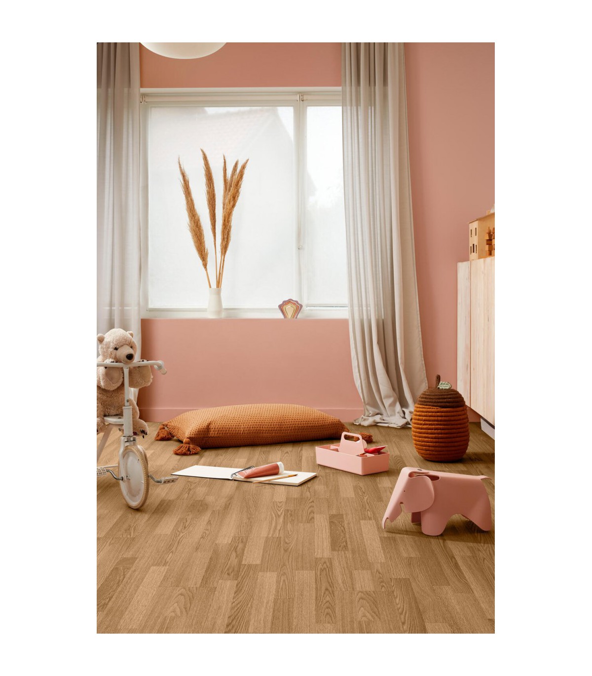 La teinte Majesty Natural apporte une nuance bois chaud et naturelle, idéale pour créer un style contemporain et raffiné. Elle s’intègre parfaitement dans tous les intérieurs, du séjour moderne à la chambre cosy, en mettant en valeur les lignes et textures du parquet stratifié.