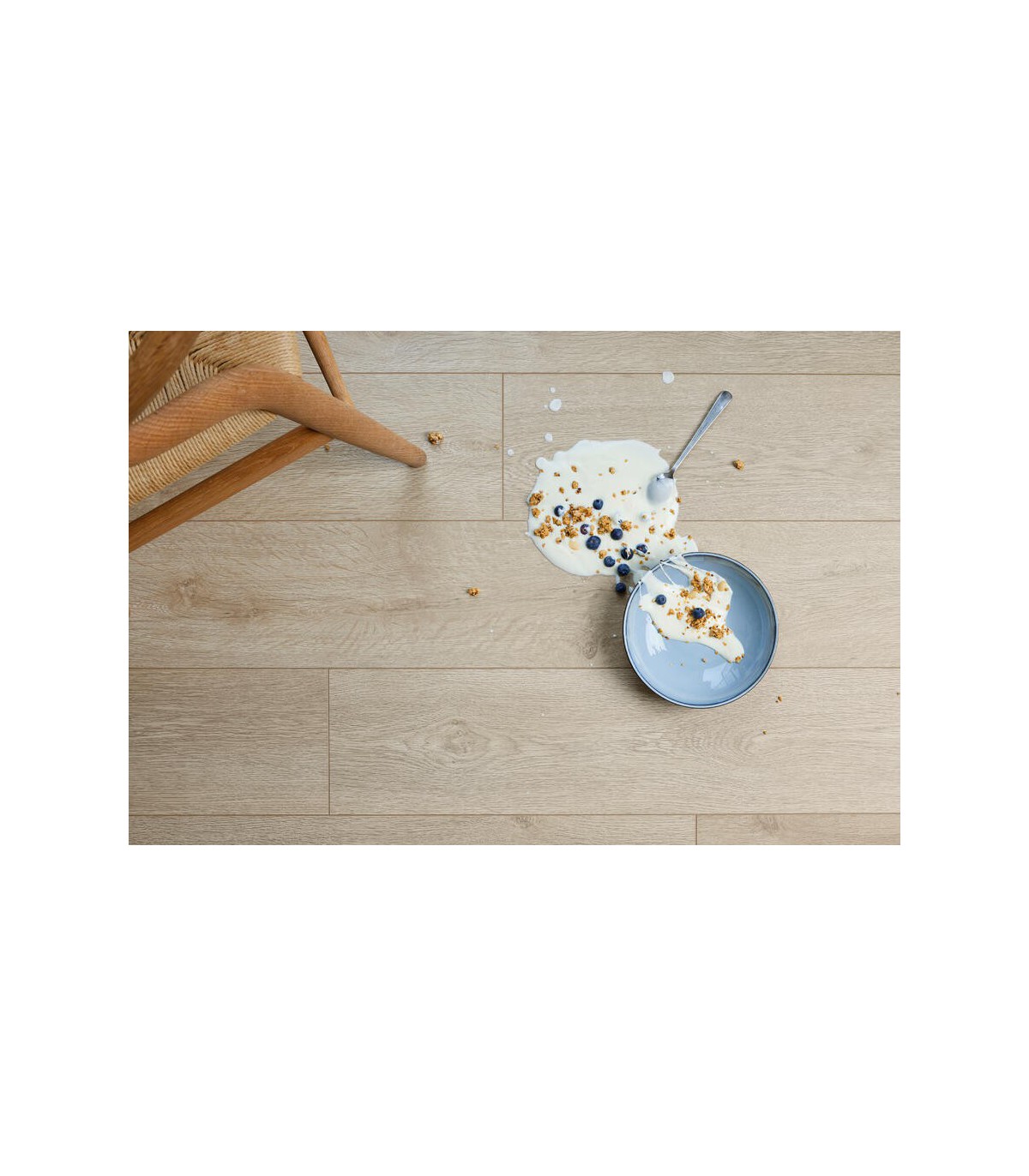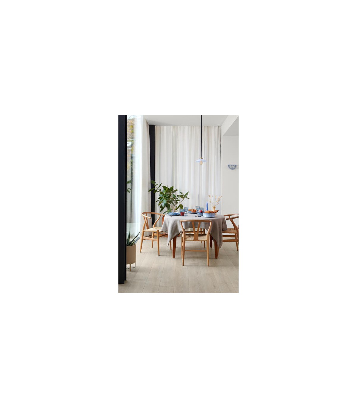 La teinte Texas Light Natural dévoile des nuances de bois clair très naturelles, offrant une atmosphère lumineuse et accueillante. Elle convient parfaitement aux intérieurs contemporains ou scandinaves, apportant élégance et chaleur. L’effet visuel des lames 8V4 avec chanfreins assure un rendu fluide et harmonieux, idéal pour un parquet stratifié pour salle de bain et pour toutes les pièces à vivre.
