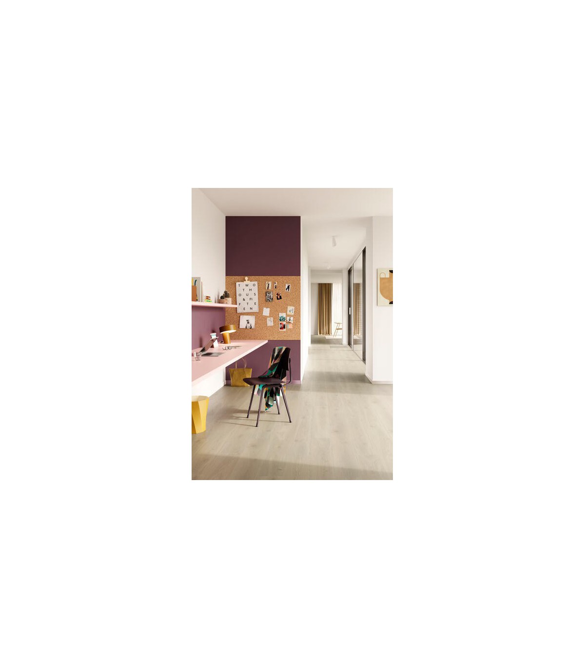 La teinte Bloom Sand Natural diffuse une lumière douce grâce à son bois clair et naturel. Elle agrandit visuellement l’espace et crée une ambiance chaleureuse et contemporaine. Parfait pour les intérieurs modernes ou scandinaves, elle met en valeur les textures du parquet stratifié et apporte élégance et harmonie.