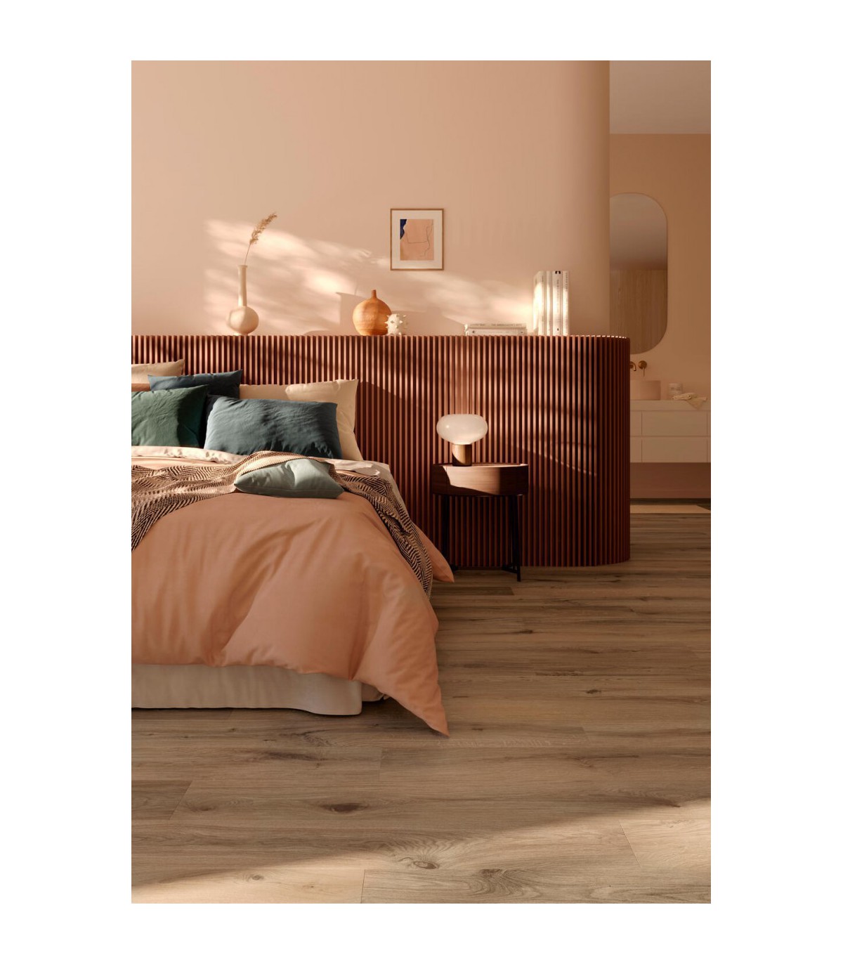 La teinte Gyant Brown Natural propose des nuances boisées chaleureuses et profondes. Elle illumine les espaces tout en offrant une ambiance naturelle et raffinée, parfaite pour un parquet stratifié salle de bain ou un intérieur contemporain. Les lames XL avec chanfreins apportent un rendu fluide et homogène, créant un sol élégant et harmonieux.