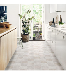 Ainsi ce sol vinyle, étant donné son excellente stabilité dimensionnelle, peut être aisément positionné dans une salle de bain par exemple, pièce dans laquelle la température et l’humidité peuvent rapidement varier.